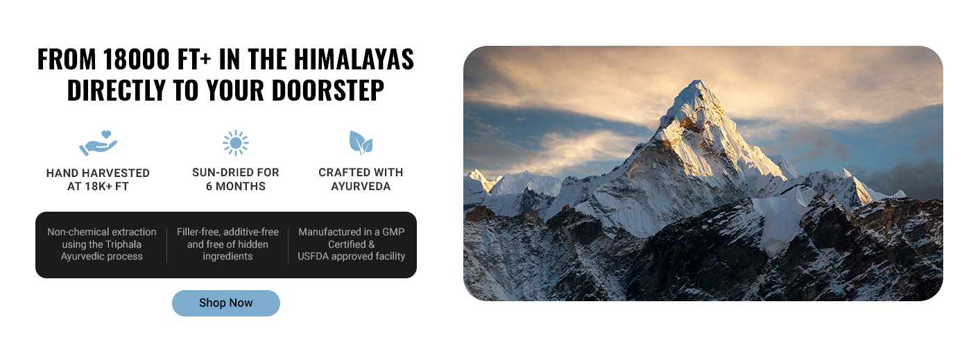 The Shilajit Rock is so rich in minerals and metals that it needs to be first purified using a traditional Ayurvedic method called the Triphala extraction method to make it suitable for human consumption. Through this we obtain the different products made from Shilajit, i.e., Resins, Gummies, Liquid Drops, & Dry Drops. Select any product to find specific usage instructions.